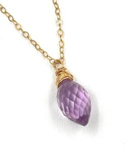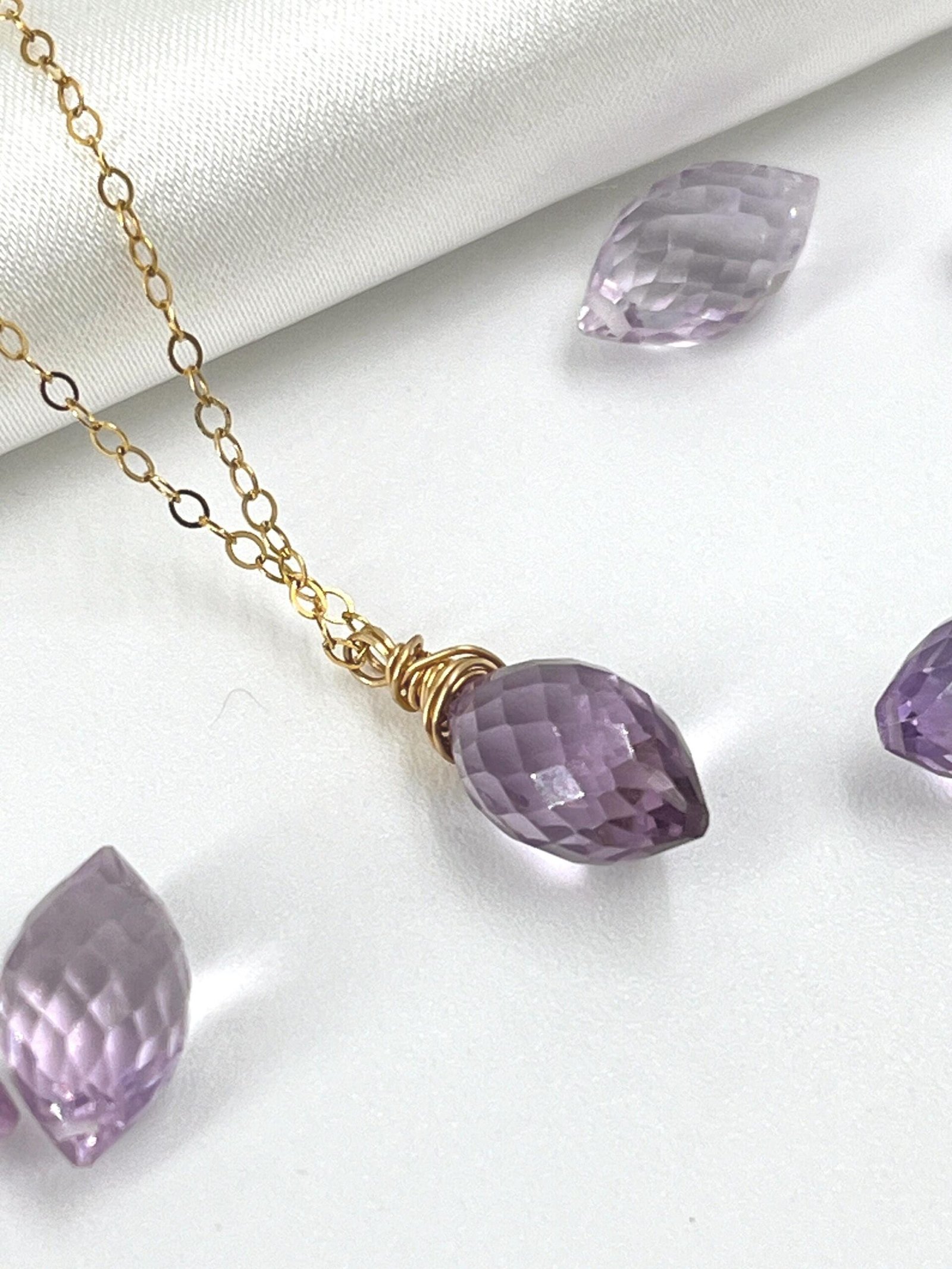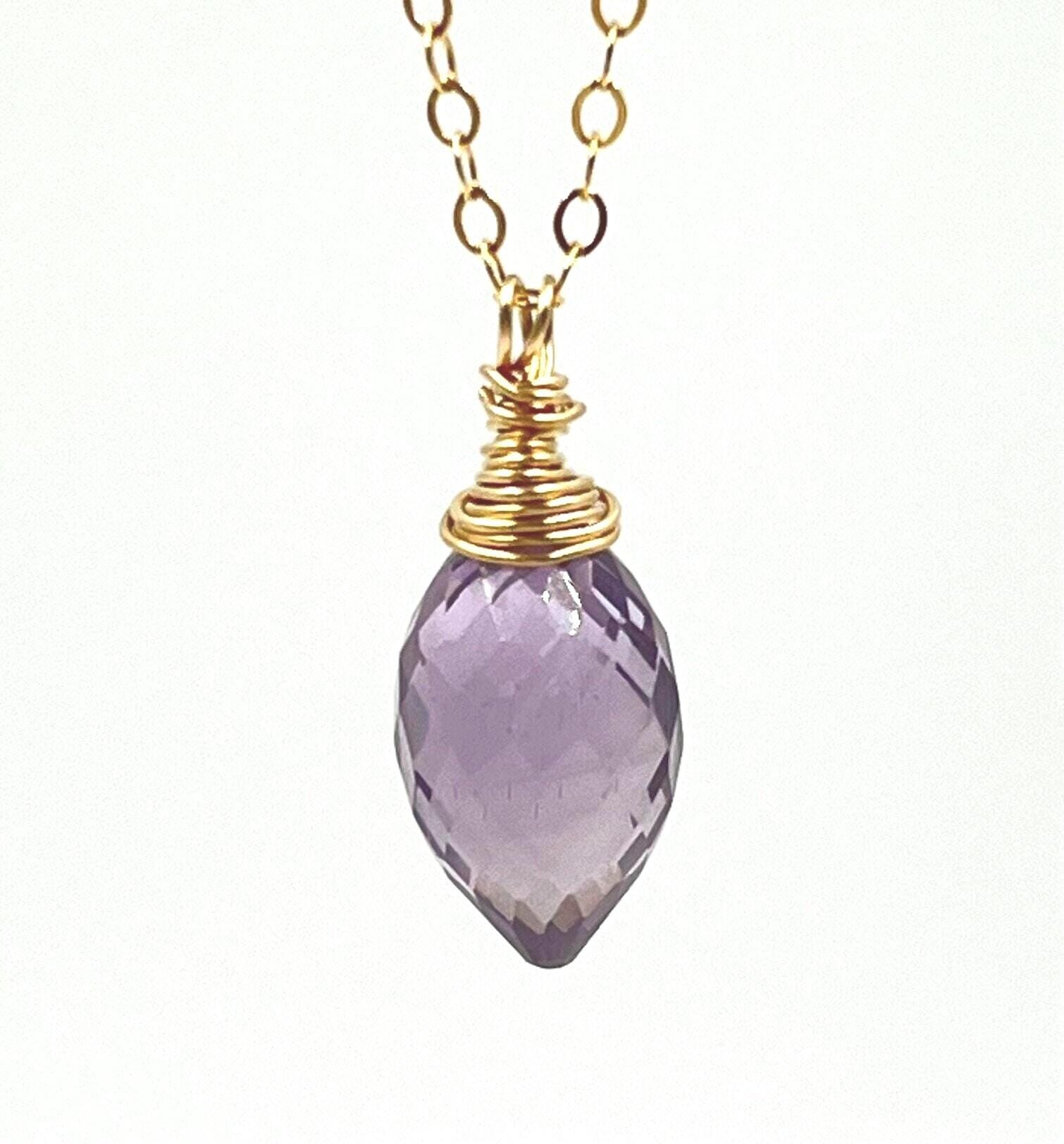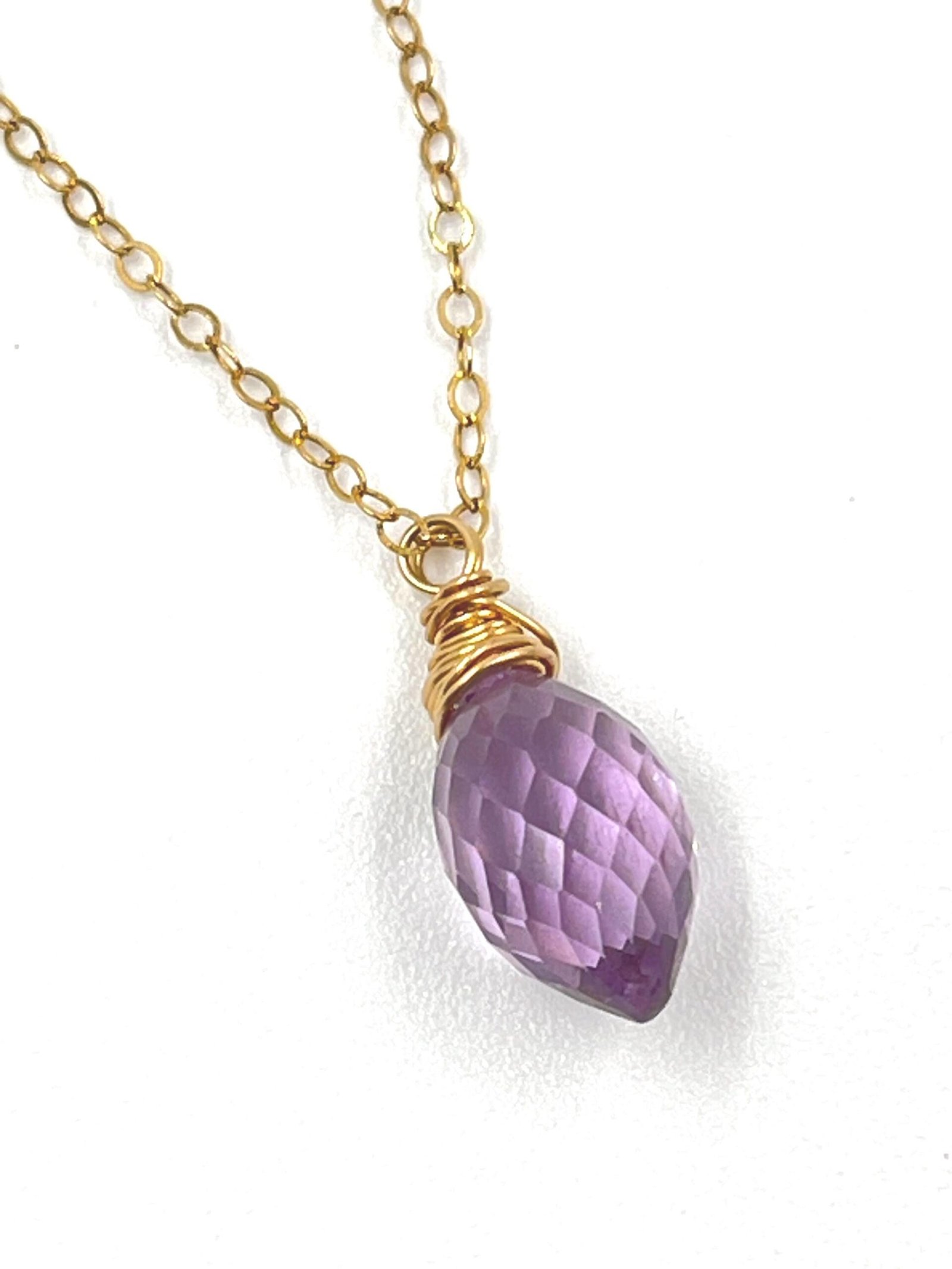 This faceted Amethyst pendant adds a soft violet glow to everyday style. Available in 14K Gold Filled or Sterling Silver, it’s a delicate minimalist piece designed for effortless wear.