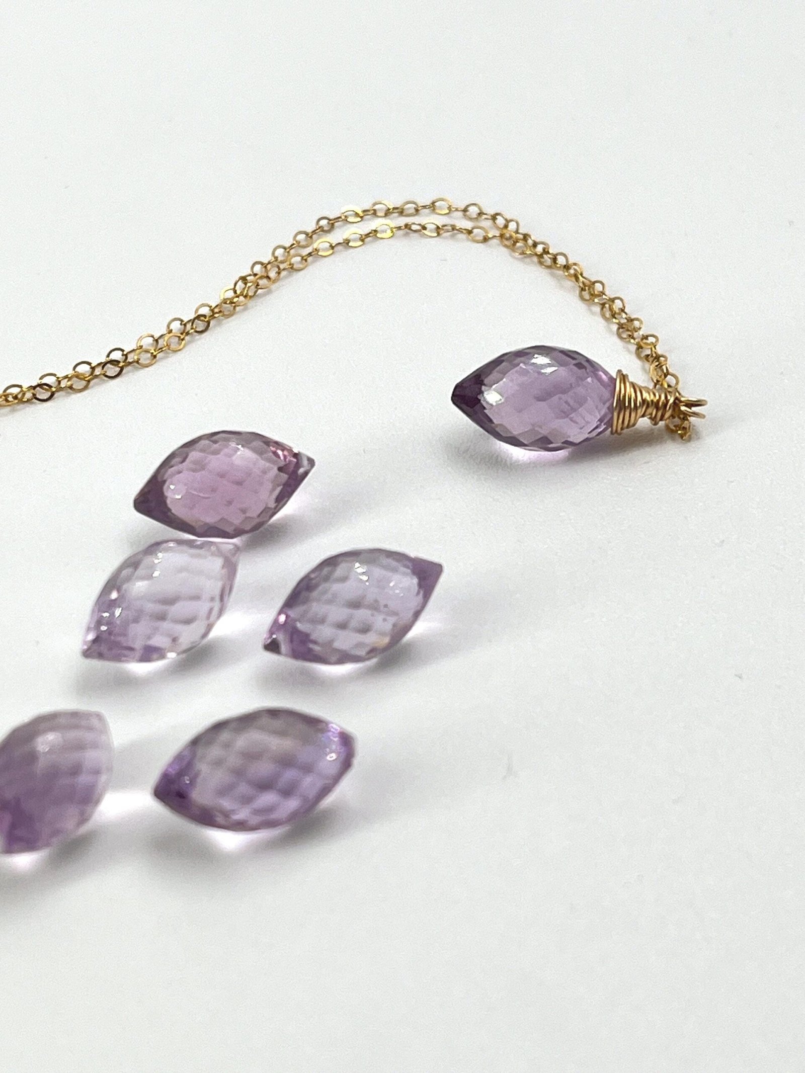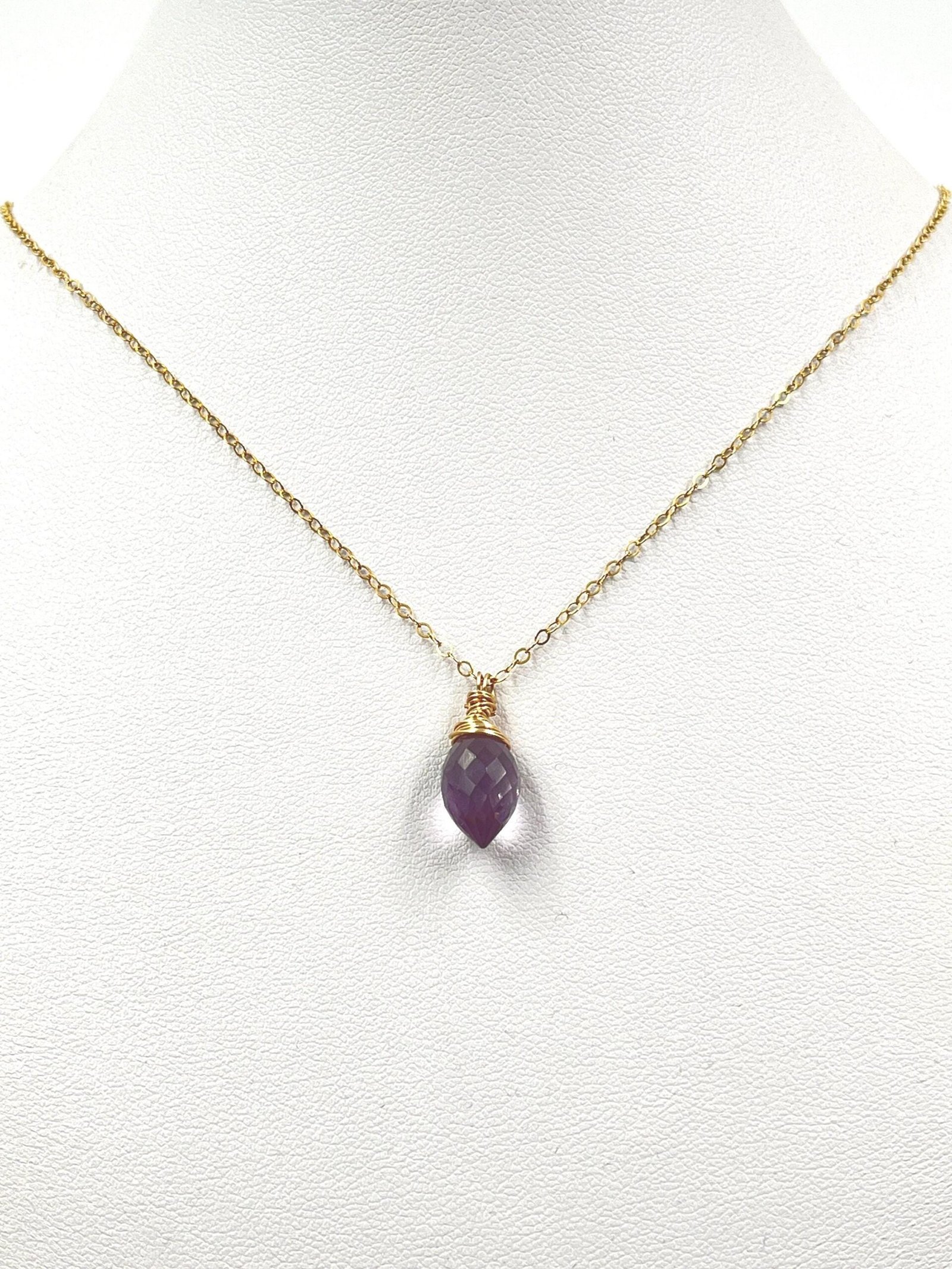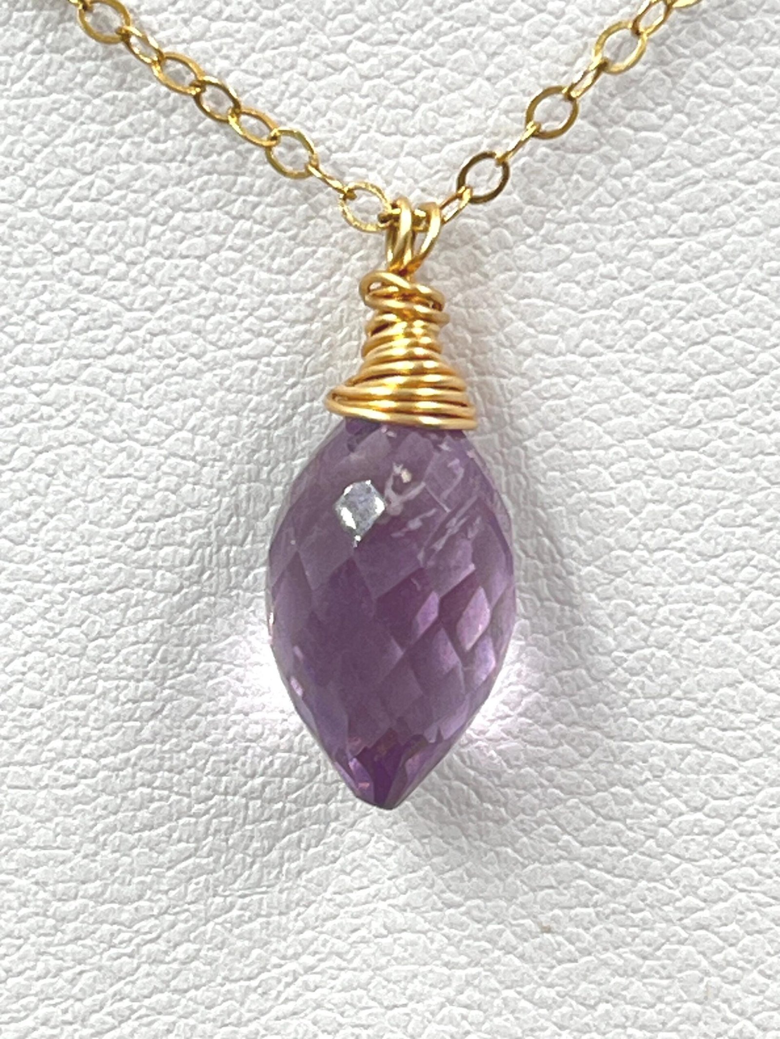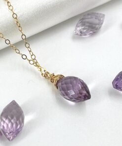 This faceted Amethyst pendant adds a soft violet glow to everyday style. Available in 14K Gold Filled or Sterling Silver, it’s a delicate minimalist piece designed for effortless wear.