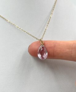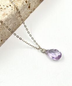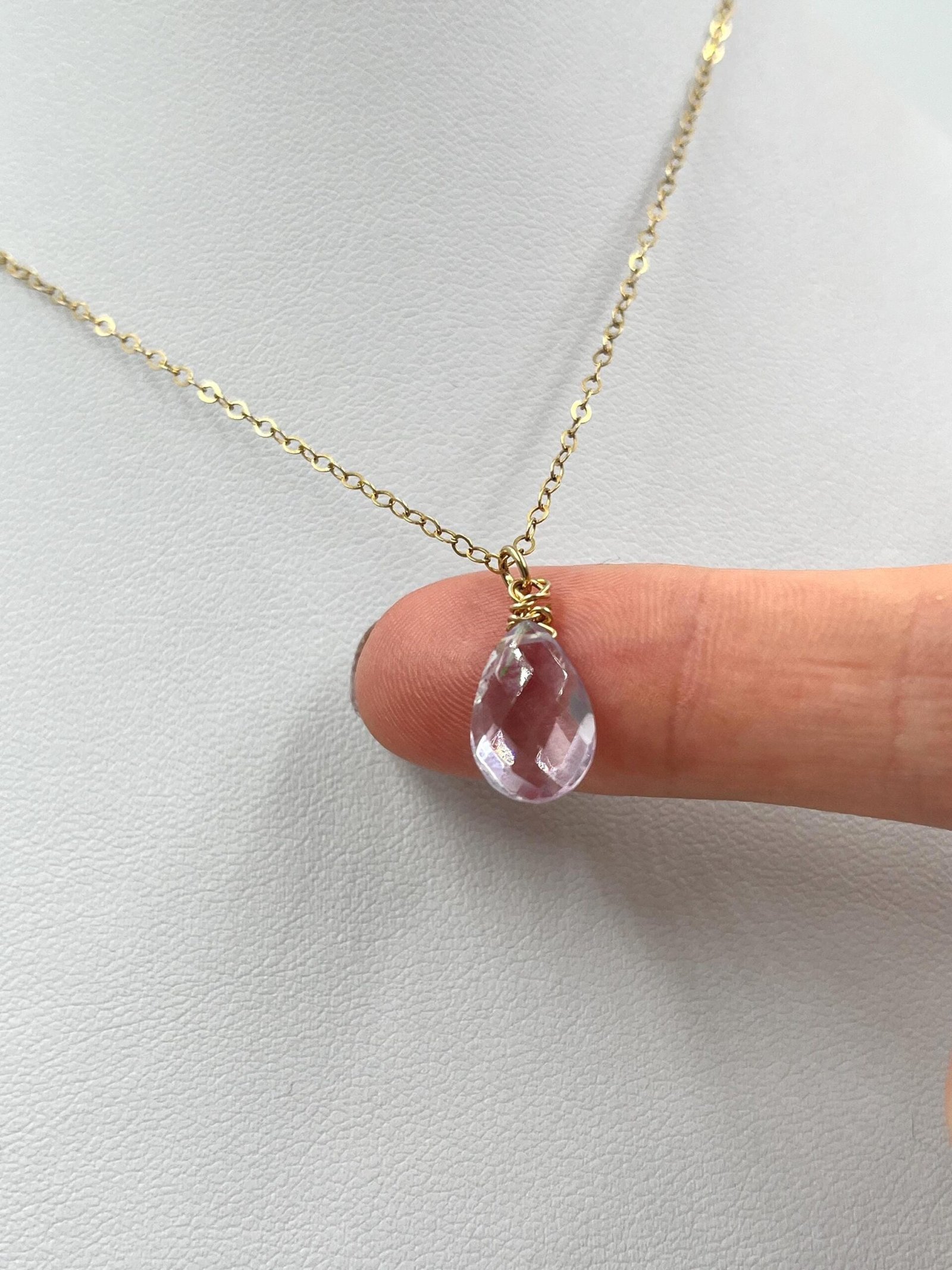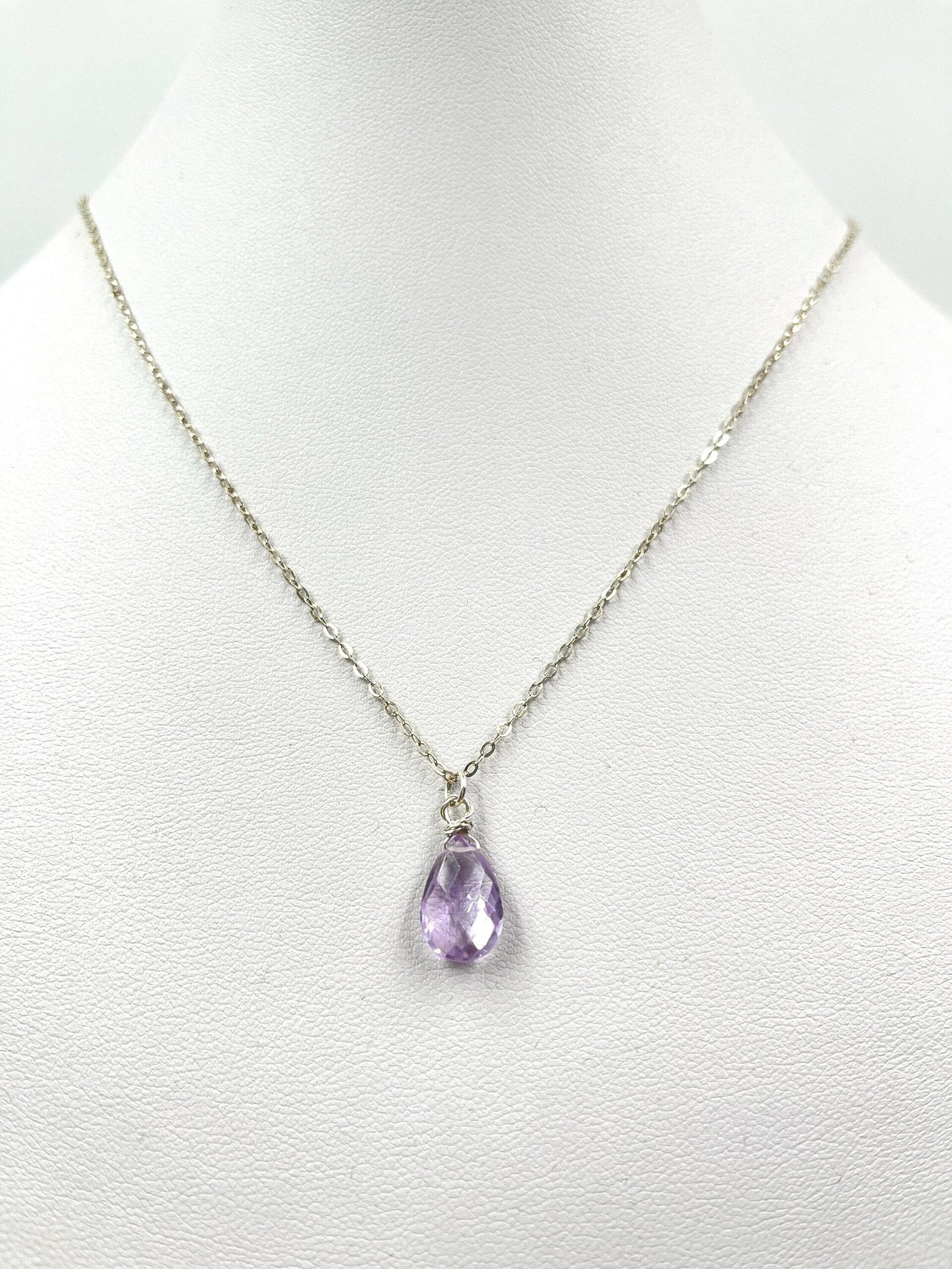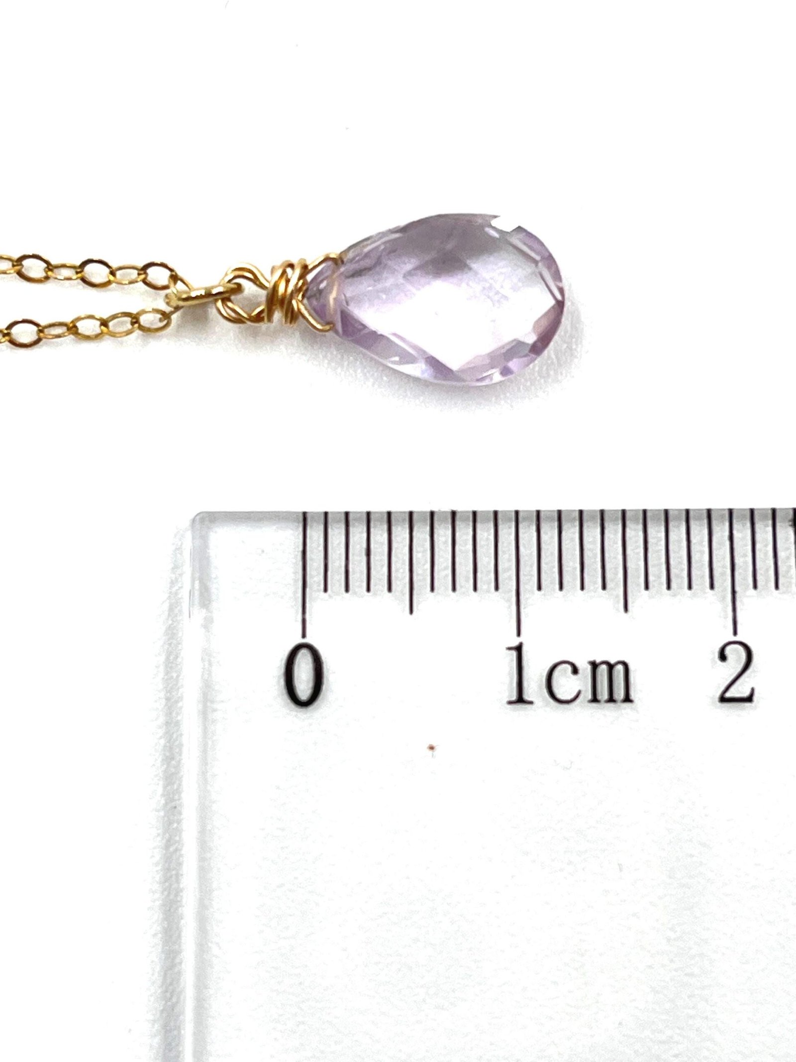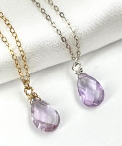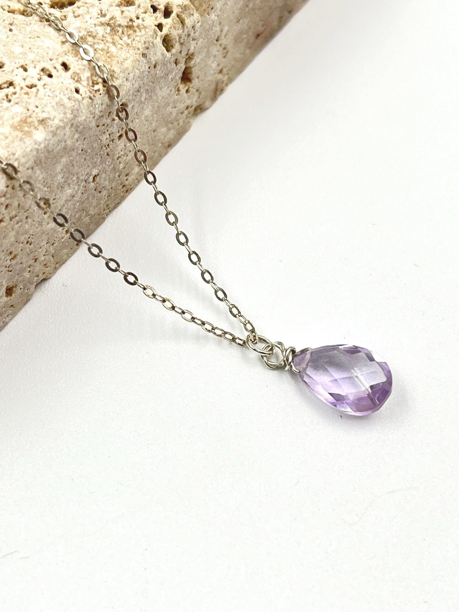 This Amethyst pendant necklace features a natural faceted briolette gemstone with a rich purple tone. Handcrafted in your choice of 14K Gold Filled or Sterling Silver, it adds a refined, minimalist touch to your everyday style.