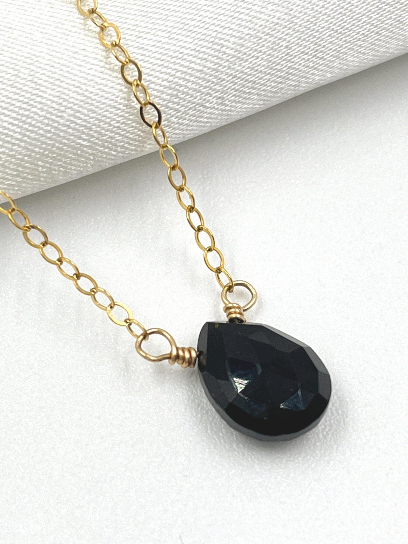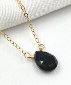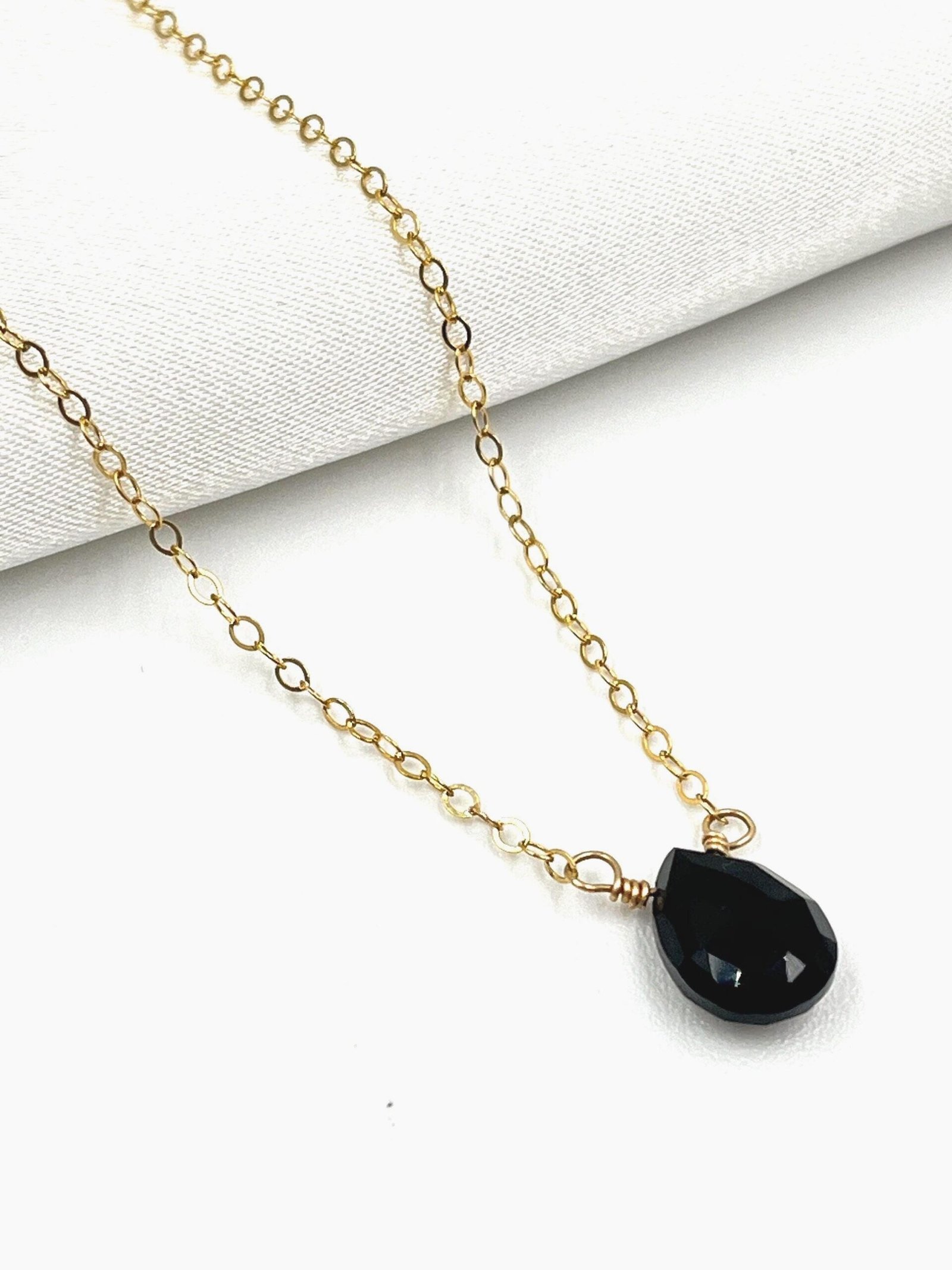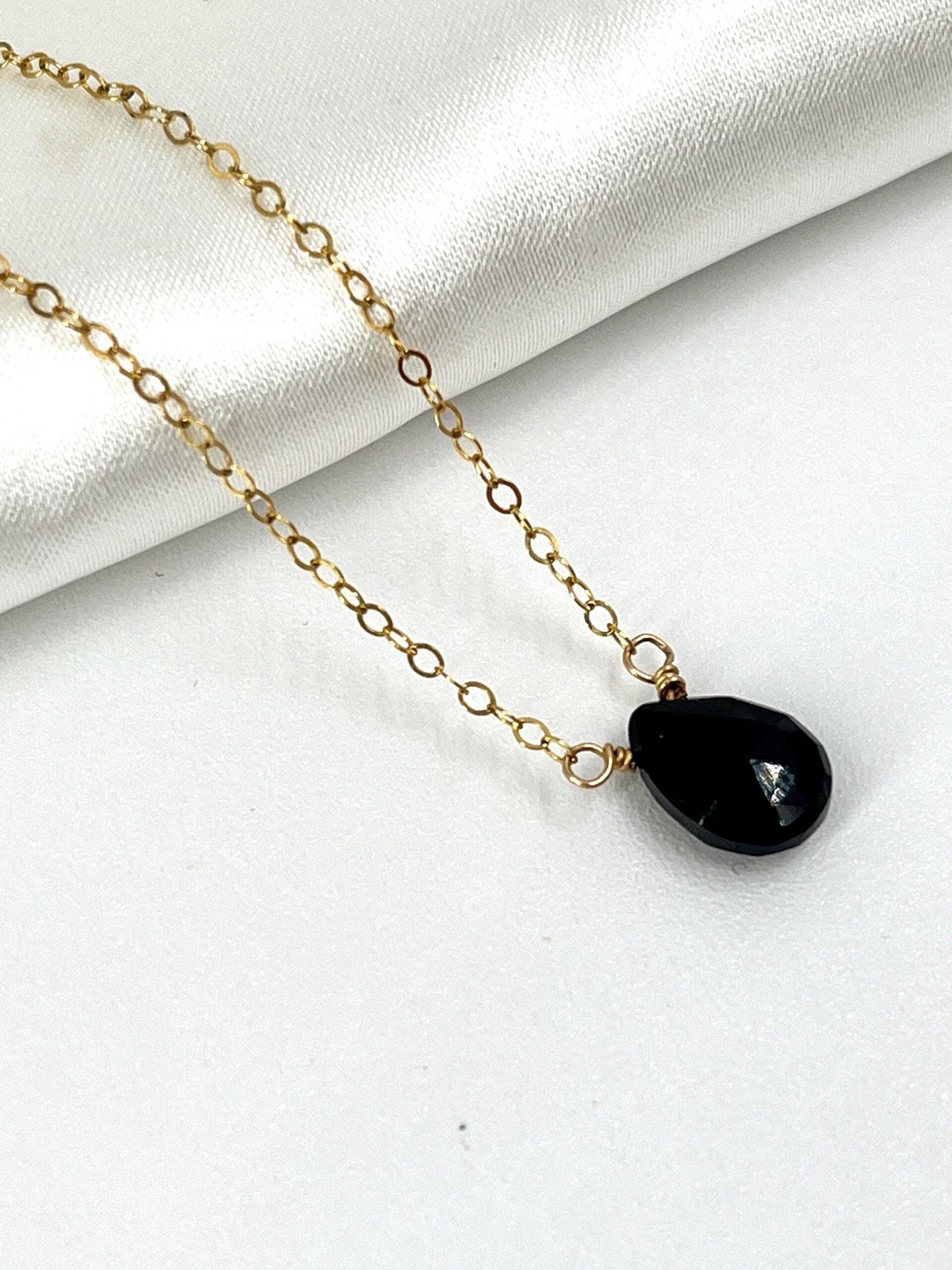This handcrafted Black Onyx necklace features a faceted gemstone available in two sizes, paired with your choice of Gold Filled or Sterling Silver chain. Its deep black tone and clean, minimalist design make it a timeless everyday piece.