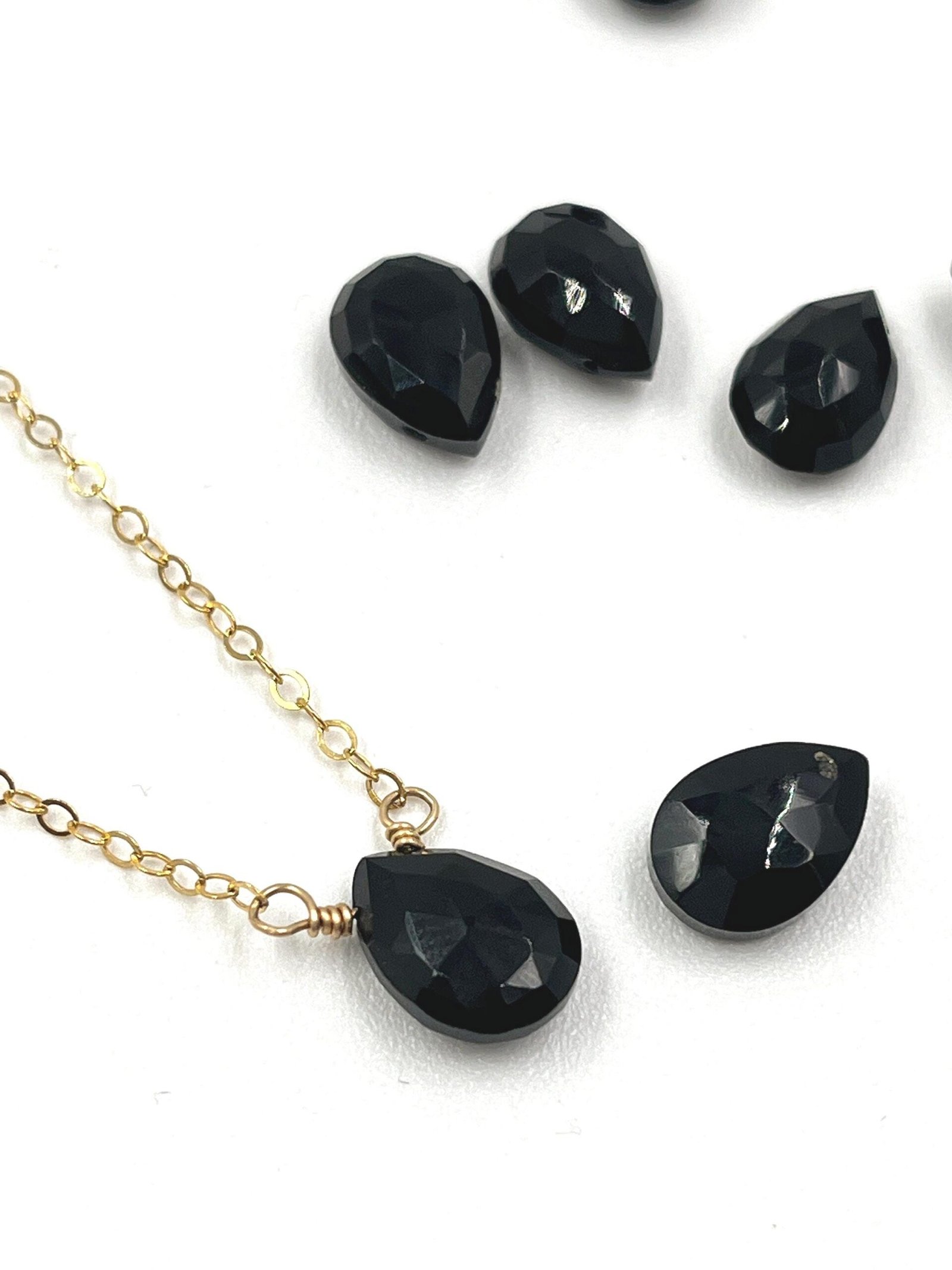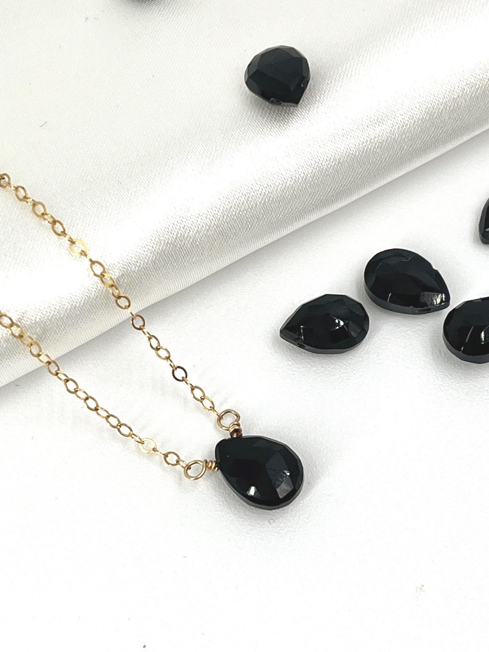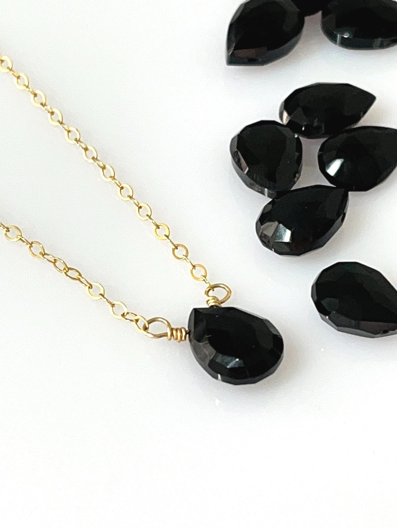 This handcrafted Black Onyx necklace features a faceted gemstone available in two sizes, paired with your choice of Gold Filled or Sterling Silver chain. Its deep black tone and clean, minimalist design make it a timeless everyday piece.