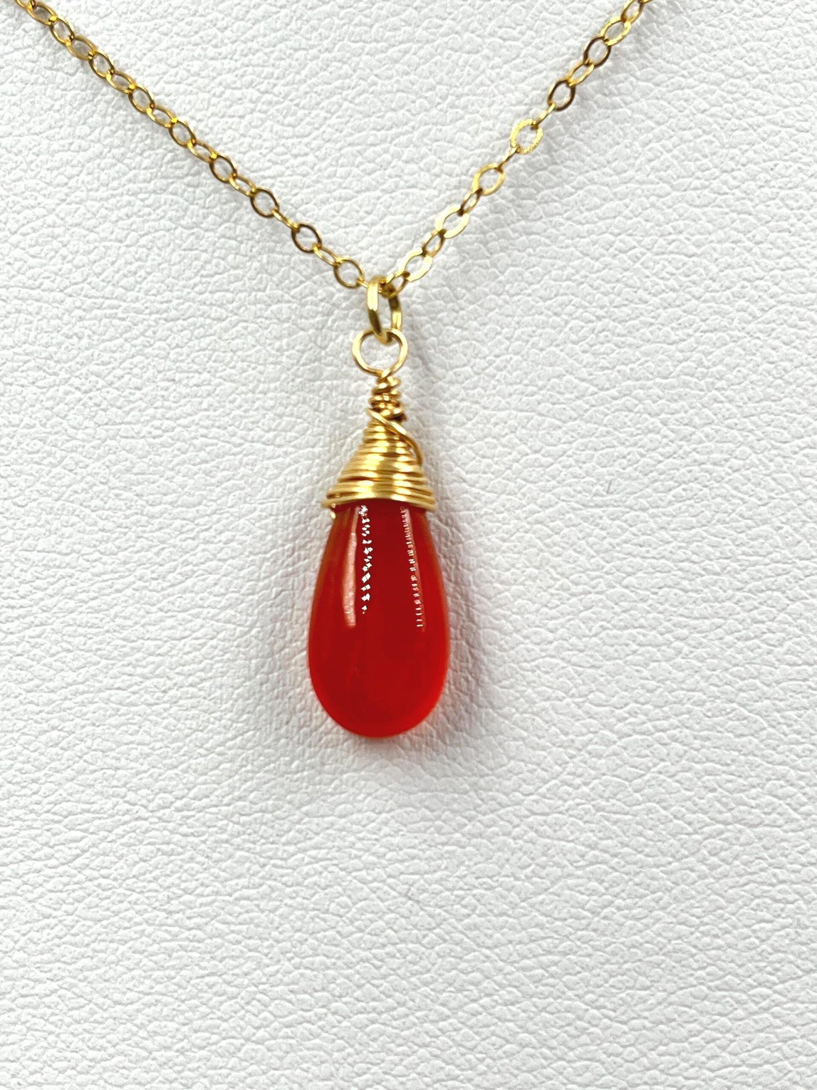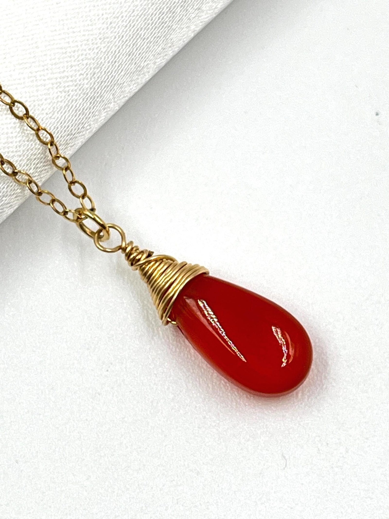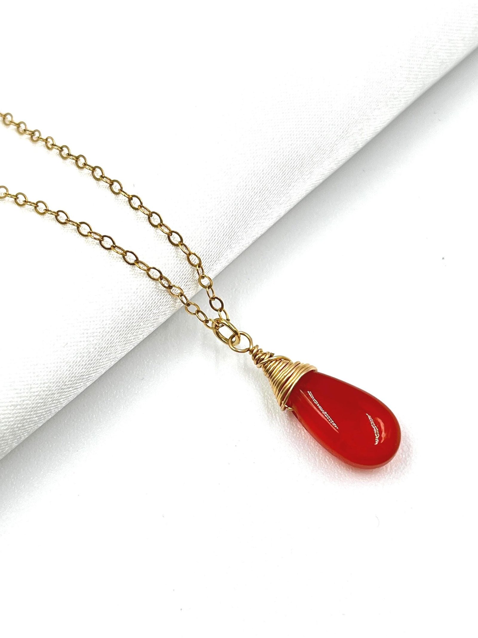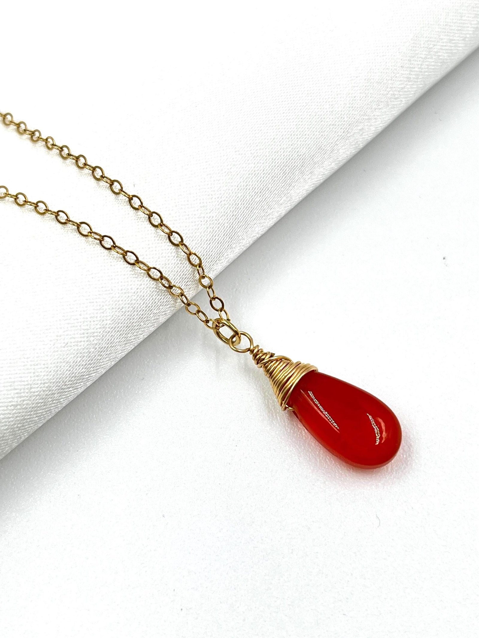 A vibrant natural Carnelian gemstone wrapped in your choice of 14K gold filled or sterling silver. This dainty pendant adds a warm, glowing touch to everyday style. Each piece is crafted individually in my small studio in Spain.