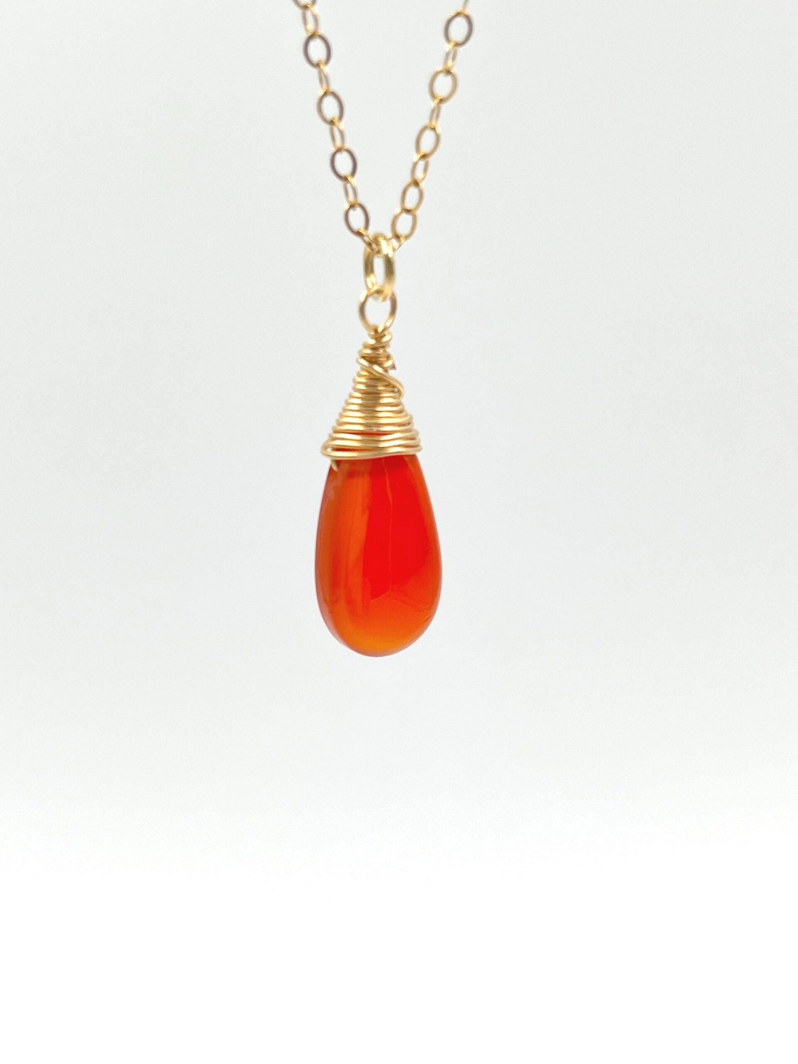 This Carnelian gemstone necklace features a beautifully faceted briolette in a rich, glowing orange tone. Handcrafted in your choice of 14K gold filled or sterling silver, it’s a minimalist piece that brings warmth, confidence, and vibrant energy to everyday wear.