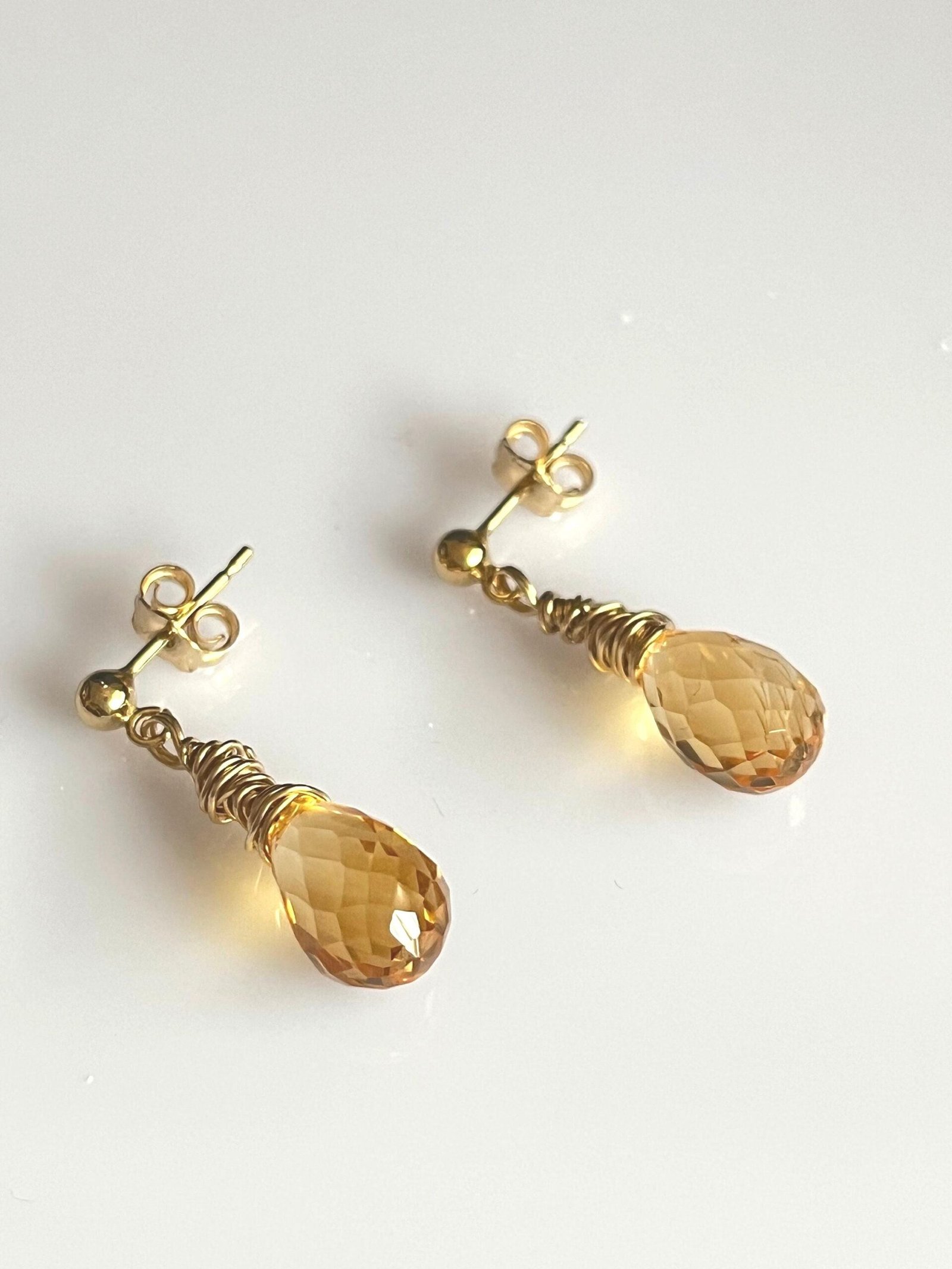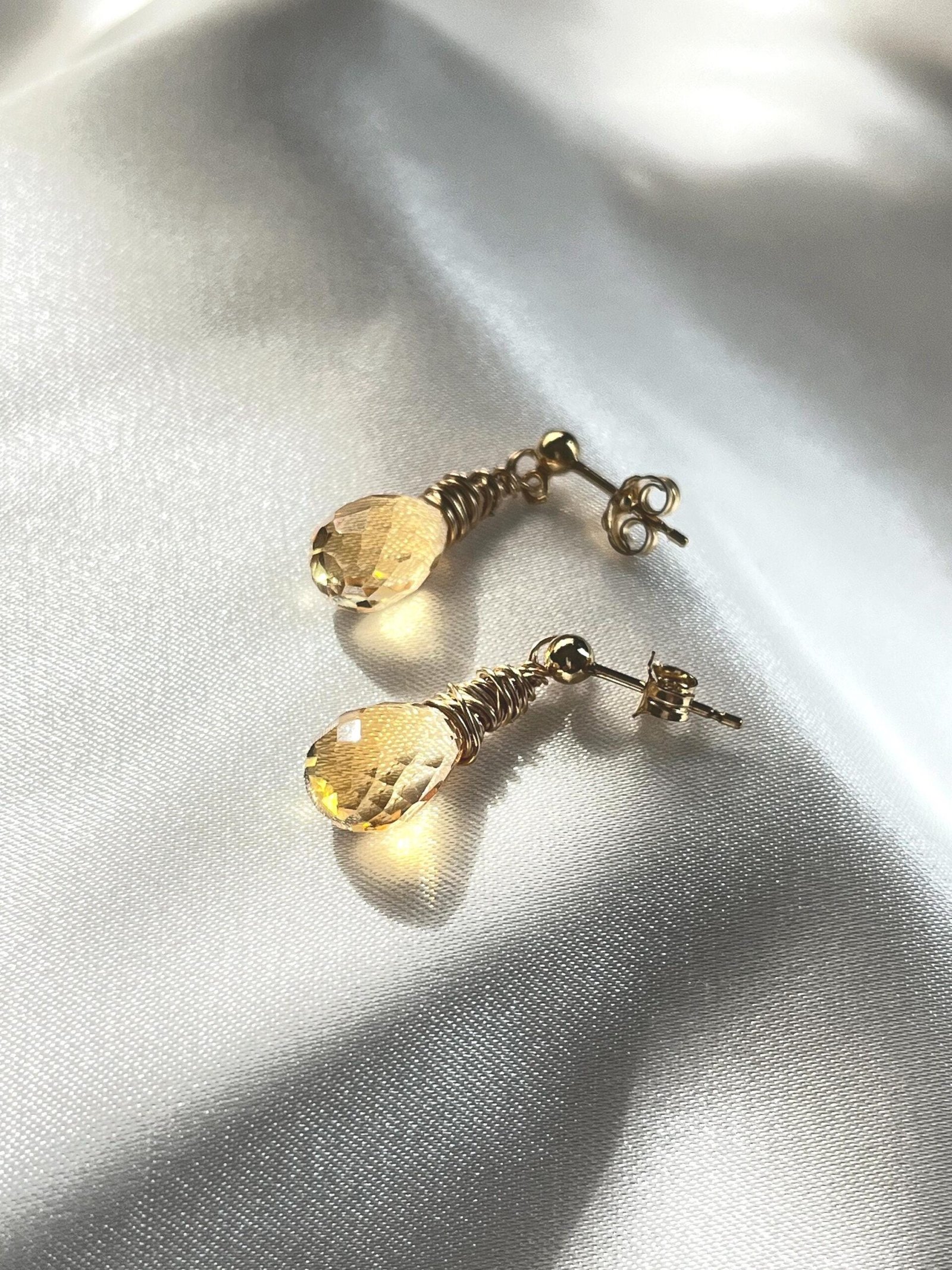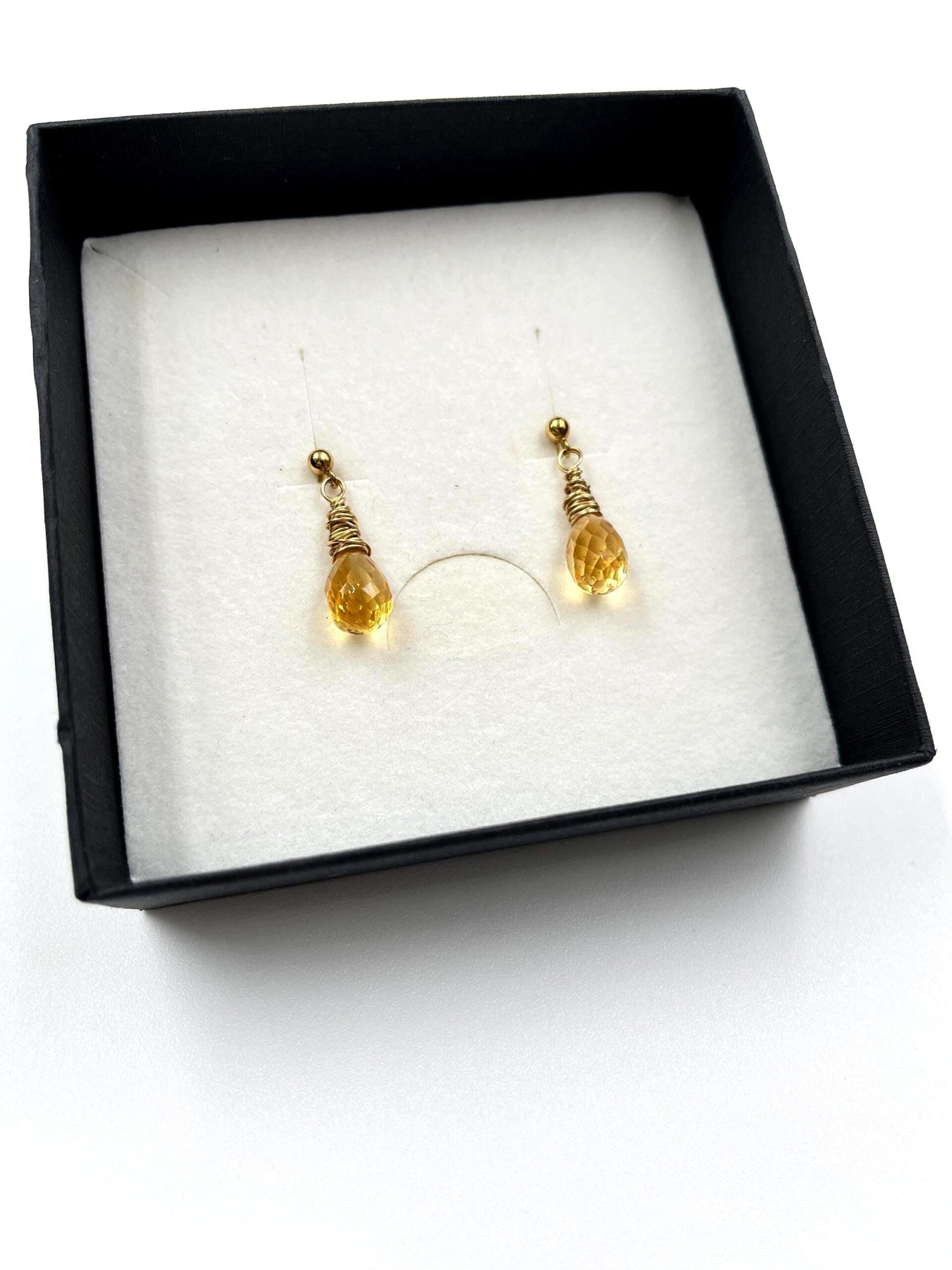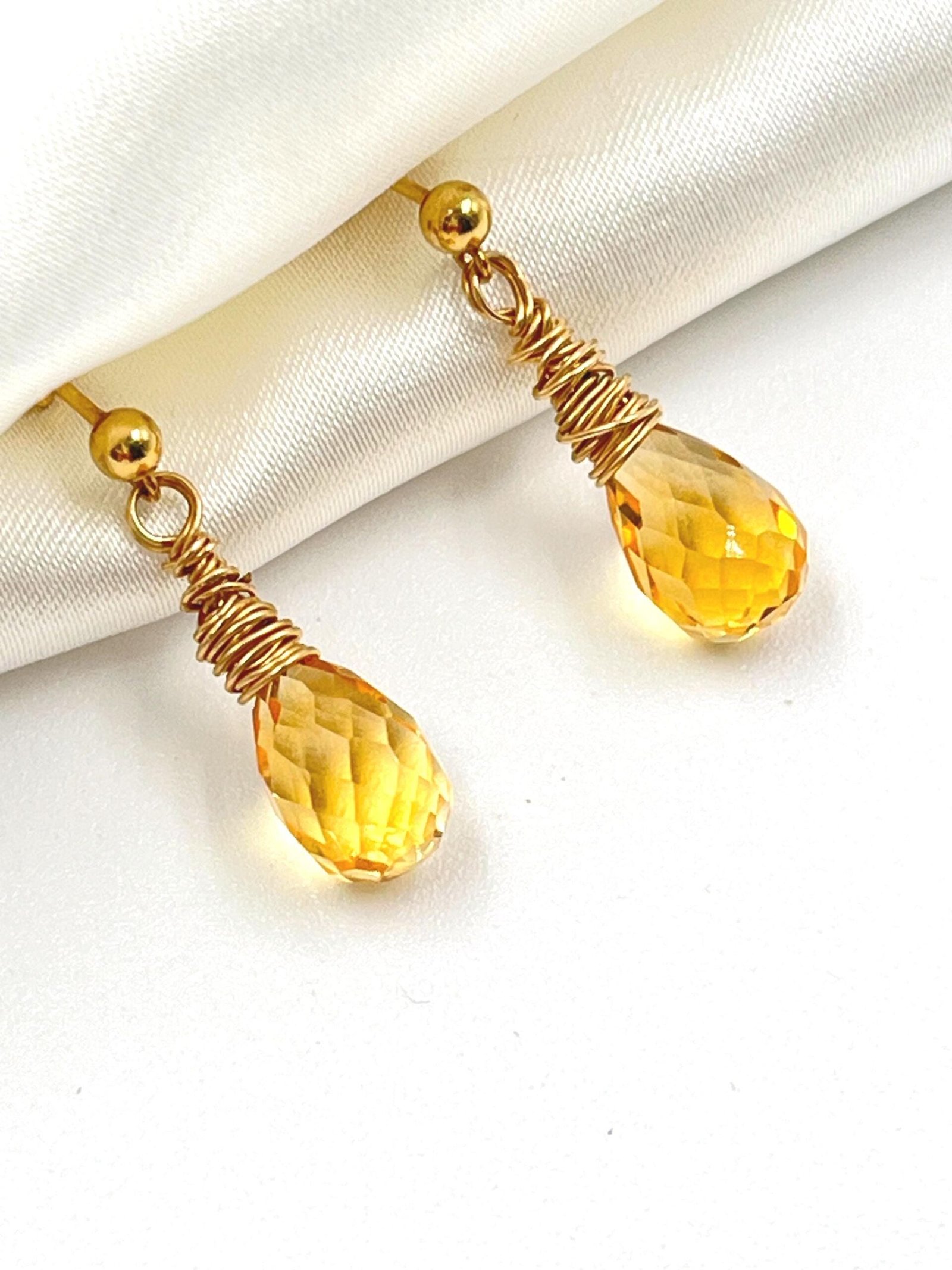 These handcrafted Citrine earrings feature natural faceted briolettes in a soft golden‑yellow tone. Available in 14K Gold Filled or Sterling Silver, they offer a delicate sparkle and a lightweight drop design perfect for everyday wear.