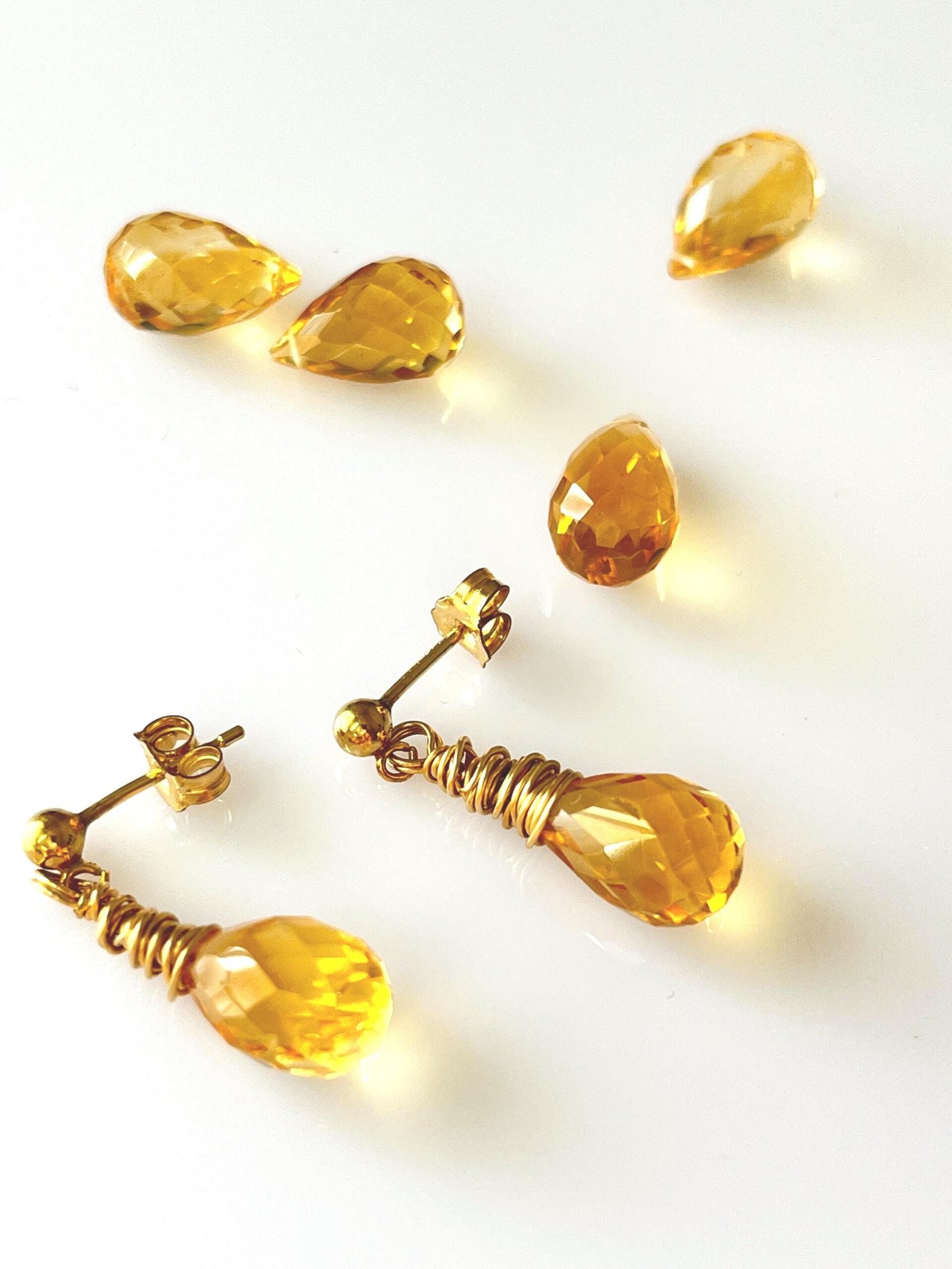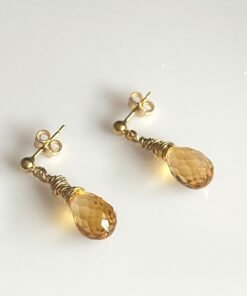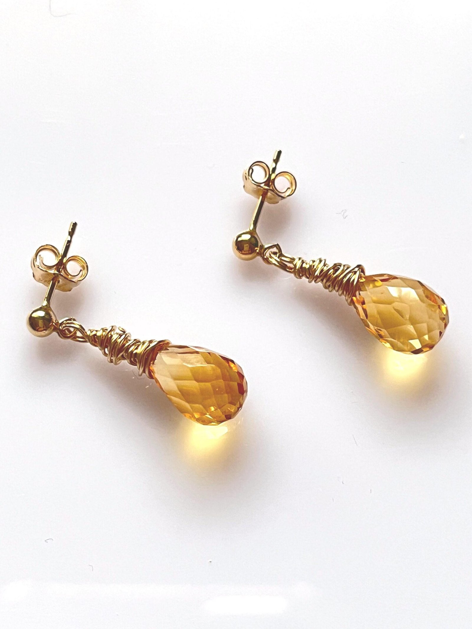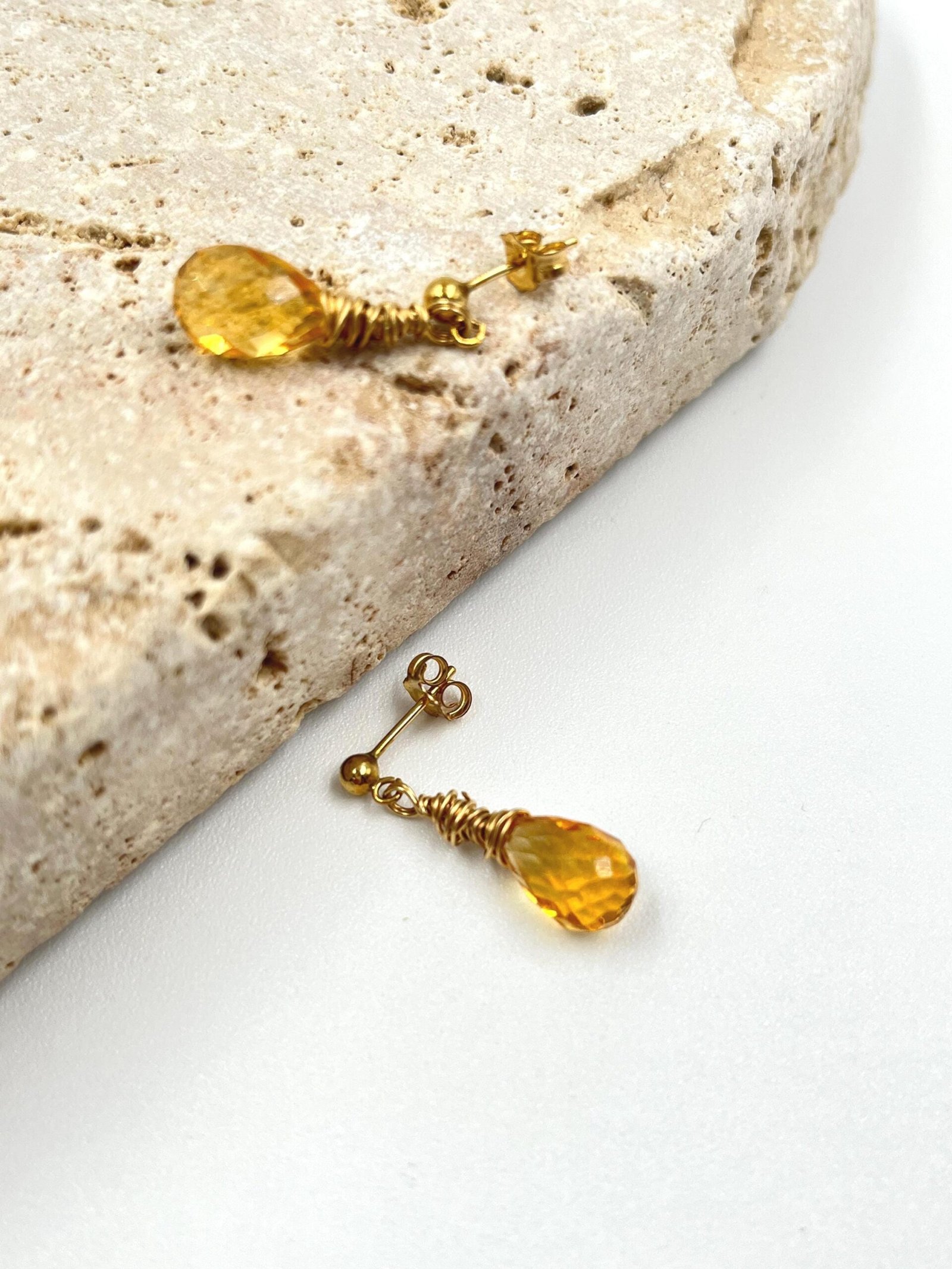 These handcrafted Citrine earrings feature natural faceted briolettes in a soft golden‑yellow tone. Available in 14K Gold Filled or Sterling Silver, they offer a delicate sparkle and a lightweight drop design perfect for everyday wear.