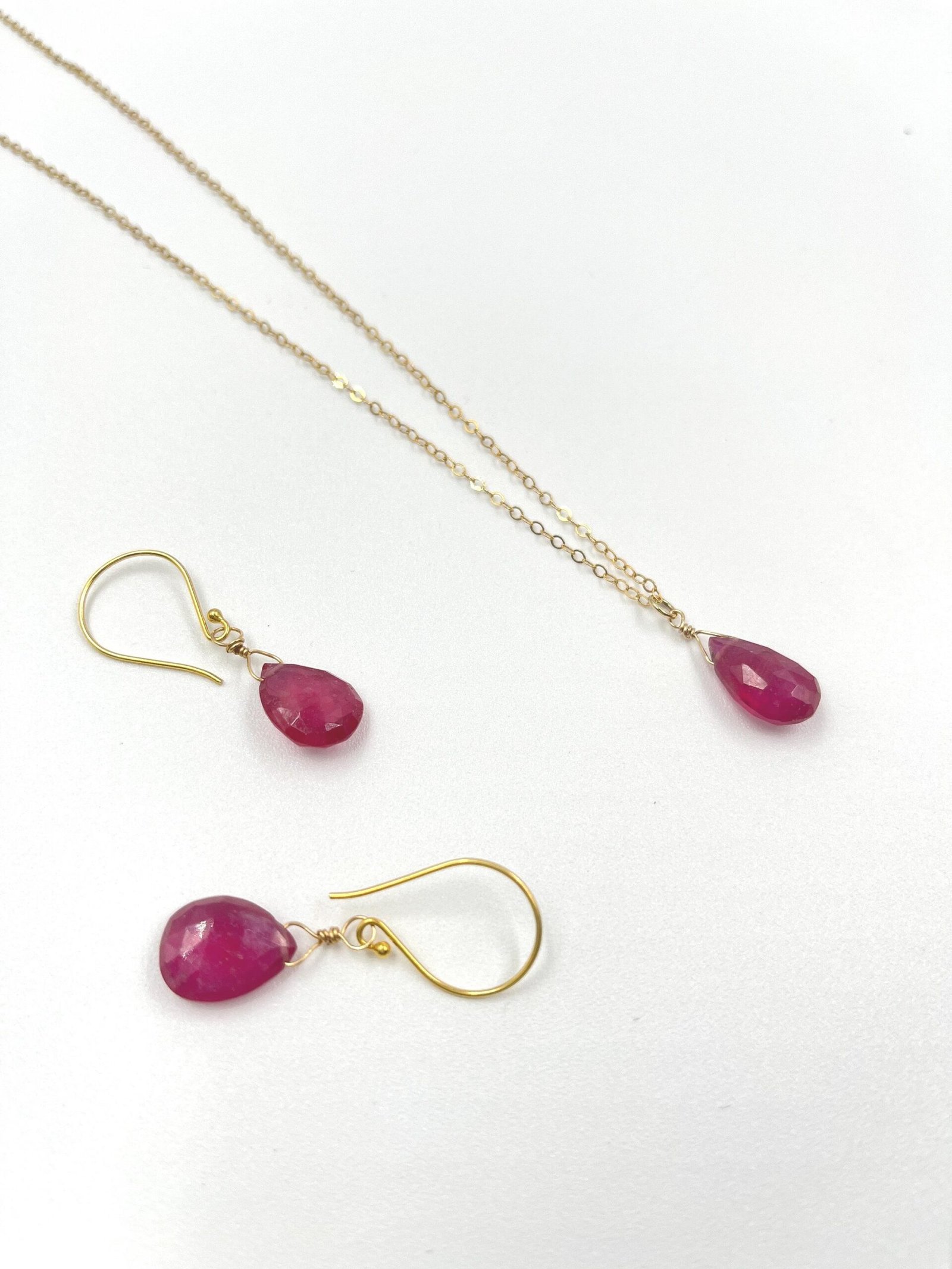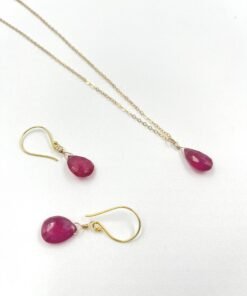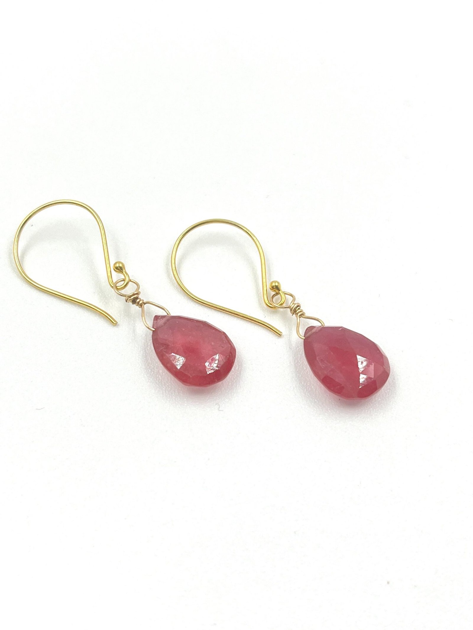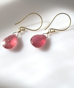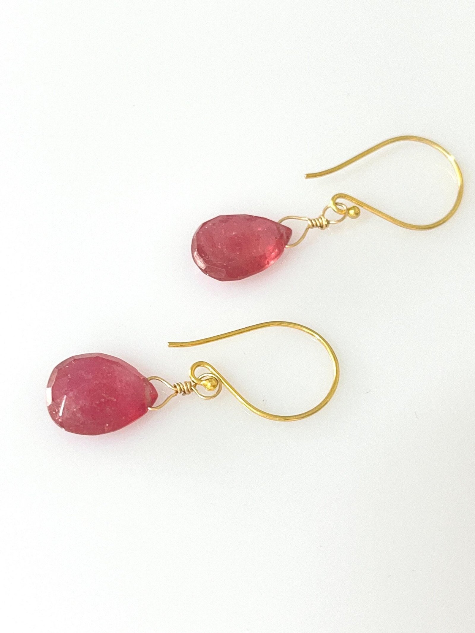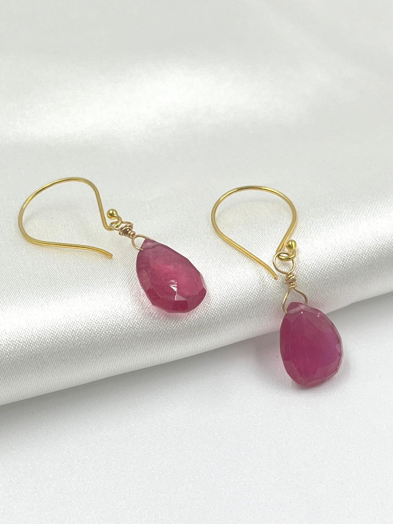 These Garnet drop earrings feature natural gemstones with a deep, rich red tone. Hand‑wrapped with 24K gold plated ear wires, they offer a lightweight, refined look suitable for everyday wear.