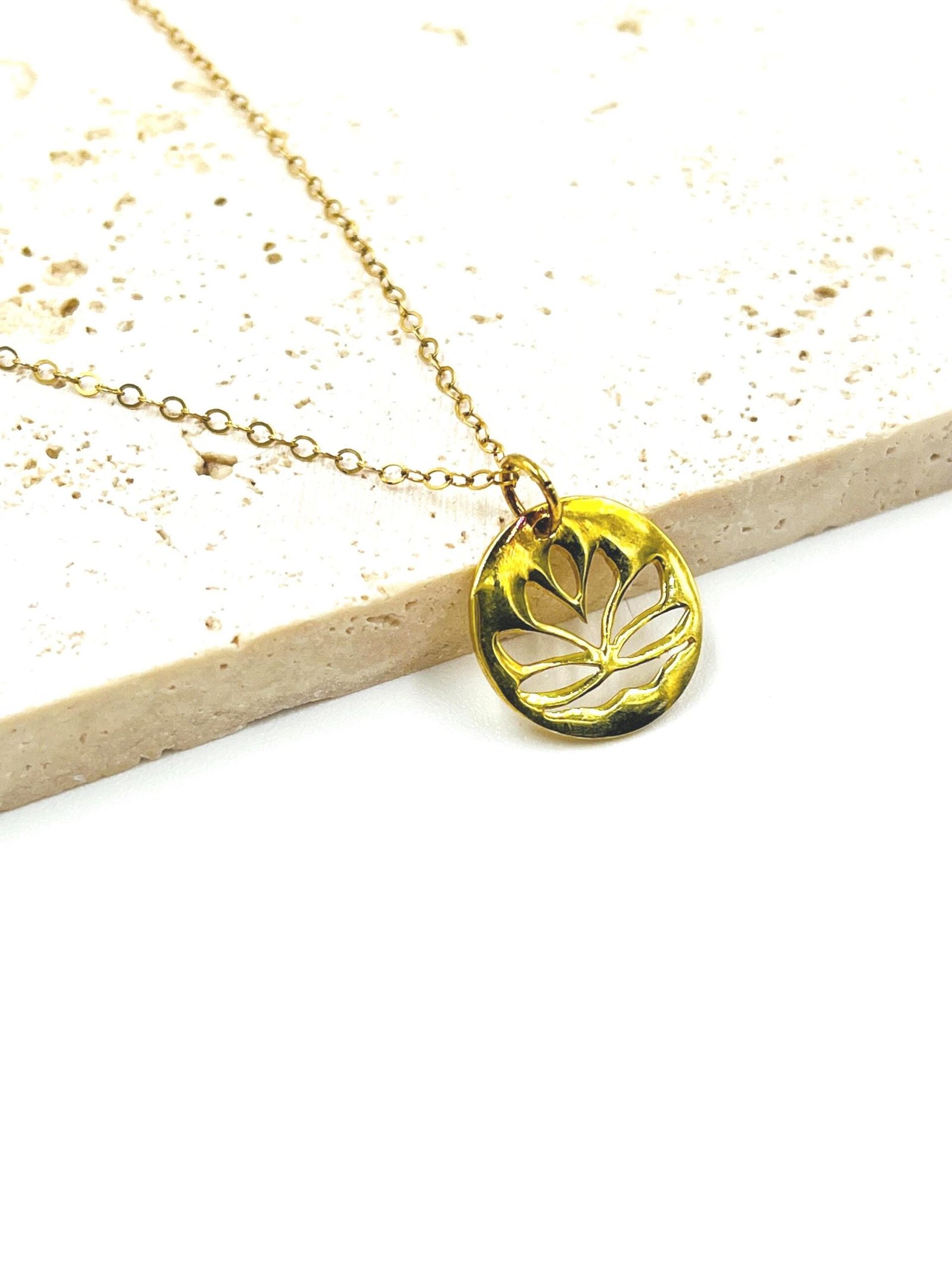 This handcrafted necklace features a beautifully detailed gold vermeil lotus pendant paired with a premium 14K Gold Filled chain. Its minimalist design and meaningful symbolism make it a timeless everyday piece inspired by nature and renewal.