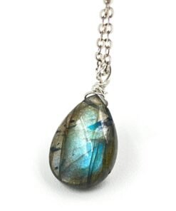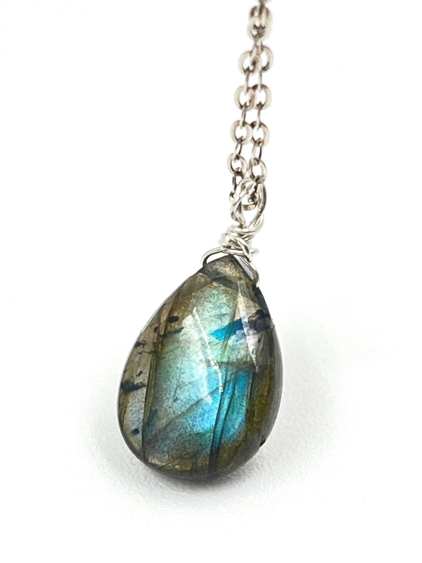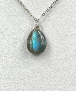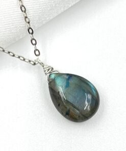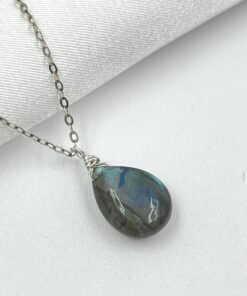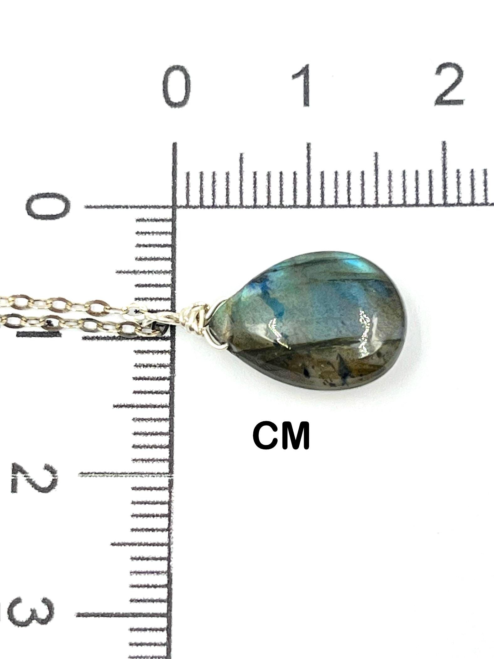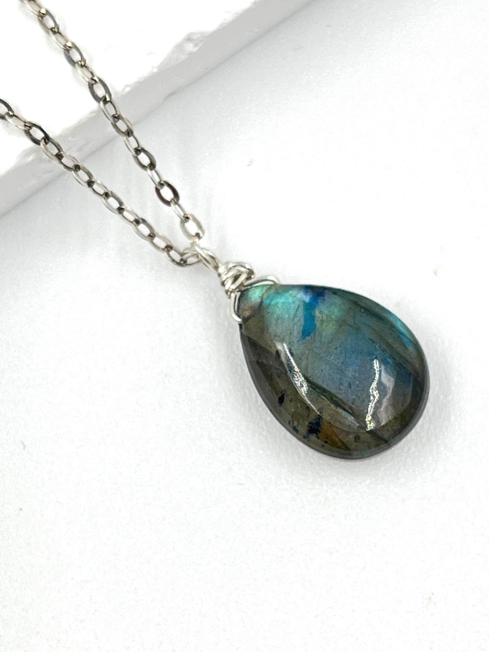 This Labradorite pendant necklace features a natural gemstone with flashes of blue, green, and gold — a visual effect known as labradorescence. Handcrafted in your choice of 14K Gold Filled or Sterling Silver, it adds a subtle, colorful glow to your everyday style.