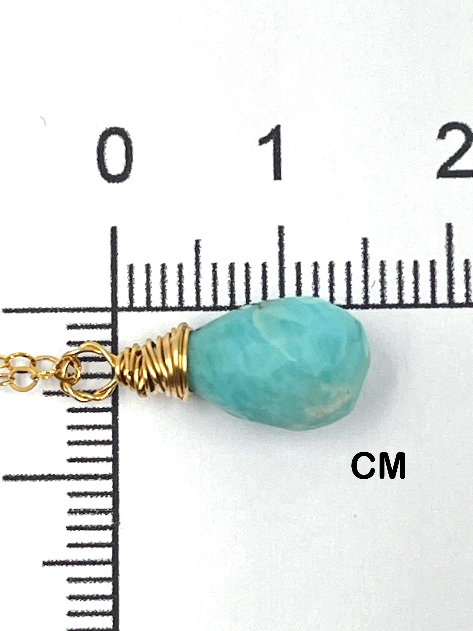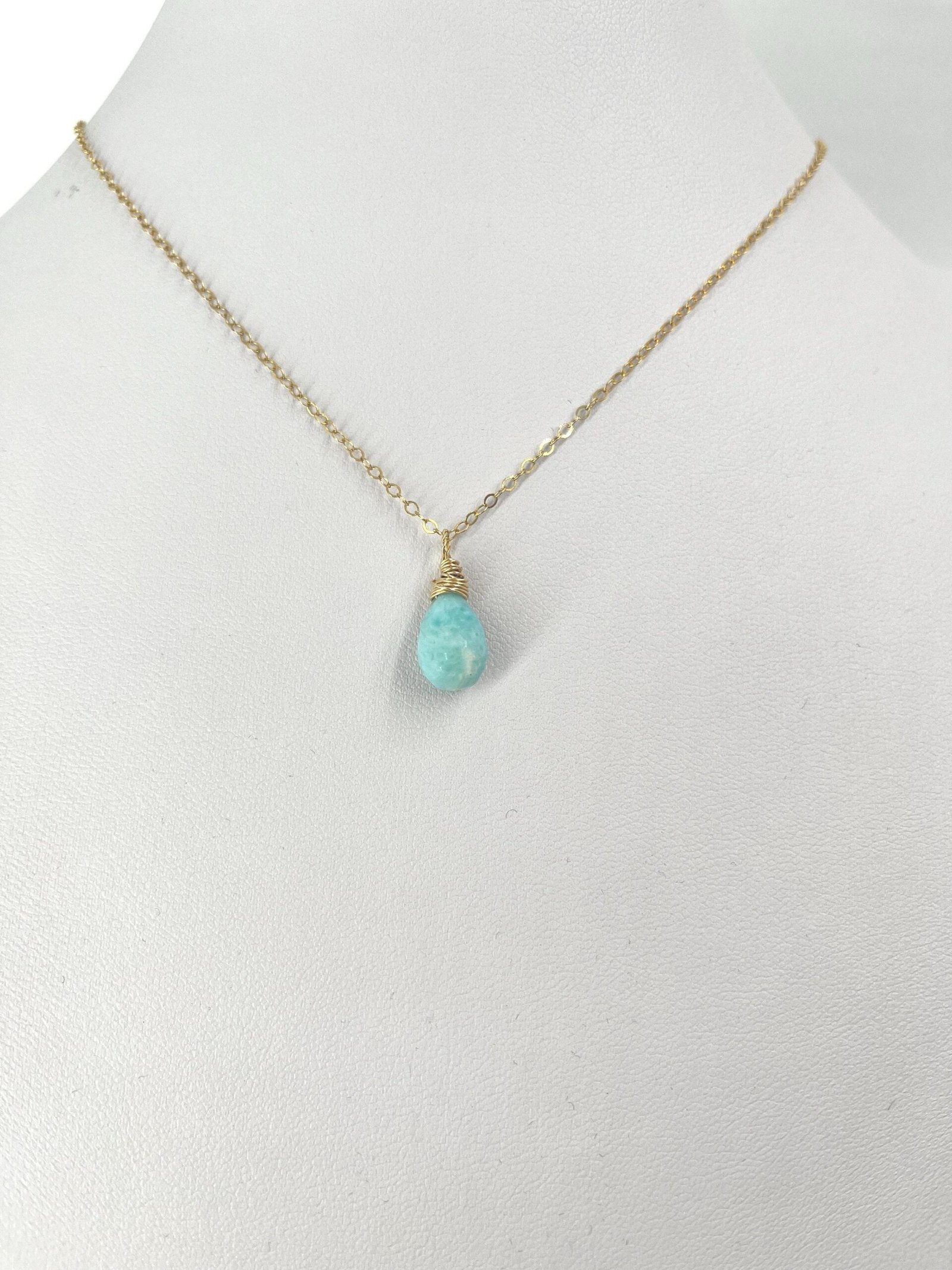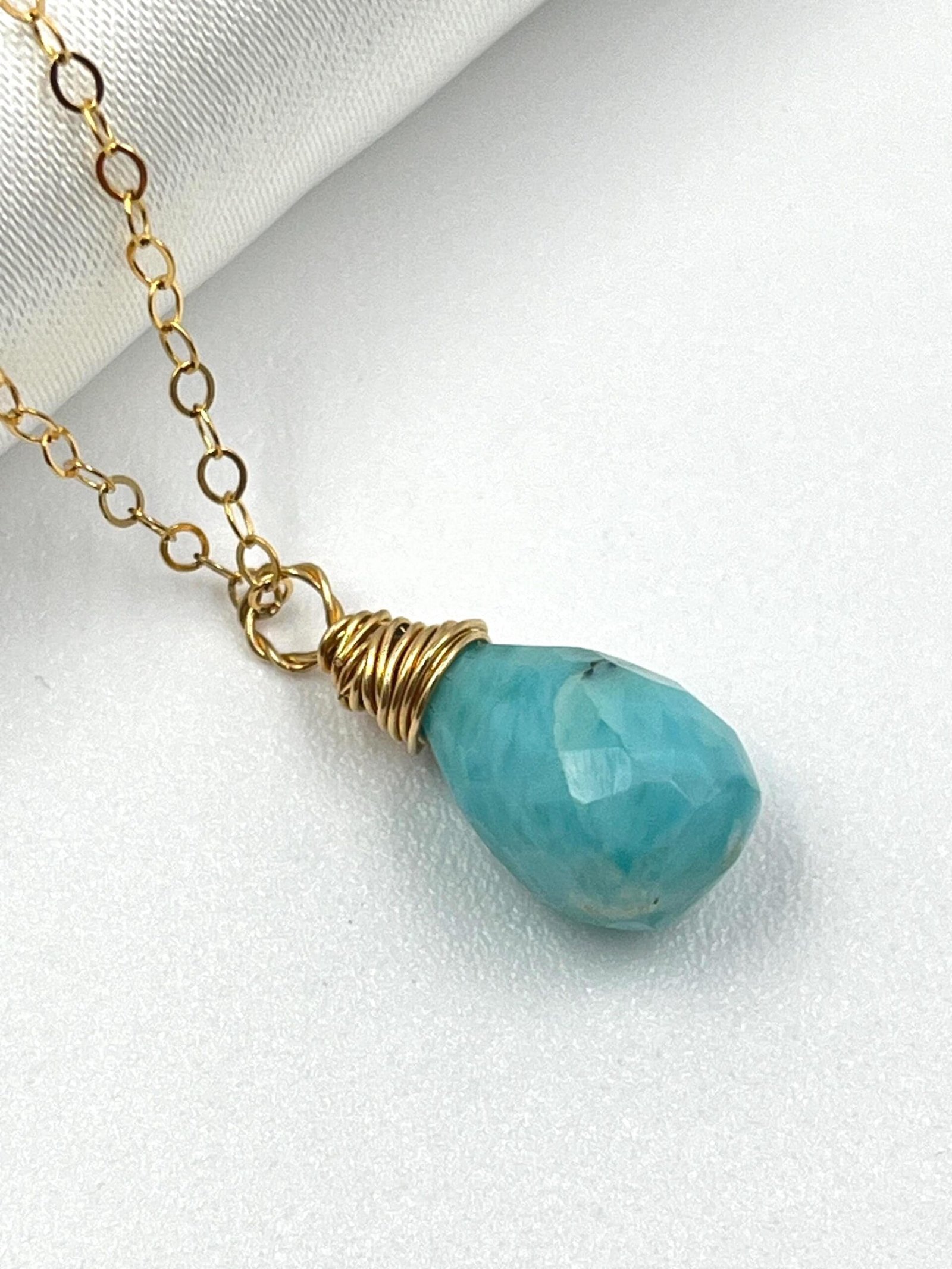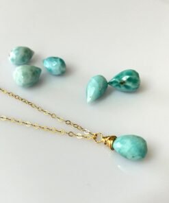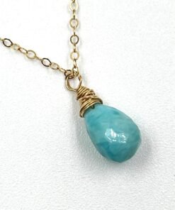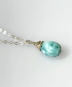 This Larimar pendant necklace features a natural pear‑shaped gemstone in a serene blue tone reminiscent of tropical waters. Available in 14K Gold Filled or Sterling Silver, it adds a calming, minimalist touch to everyday style.