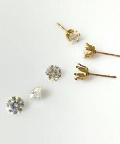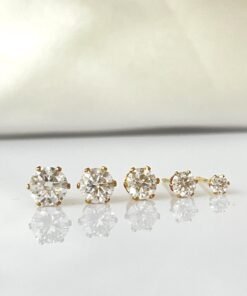 These Moissanite stud earrings feature VVS1 round brilliant stones with exceptional sparkle and clarity. Available in Stainless Steel, Sterling Silver, or 14K Gold Filled, they offer a clean, elegant look suitable for everyday wear.
