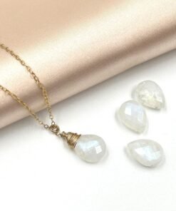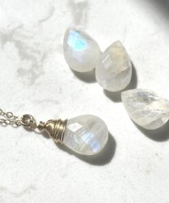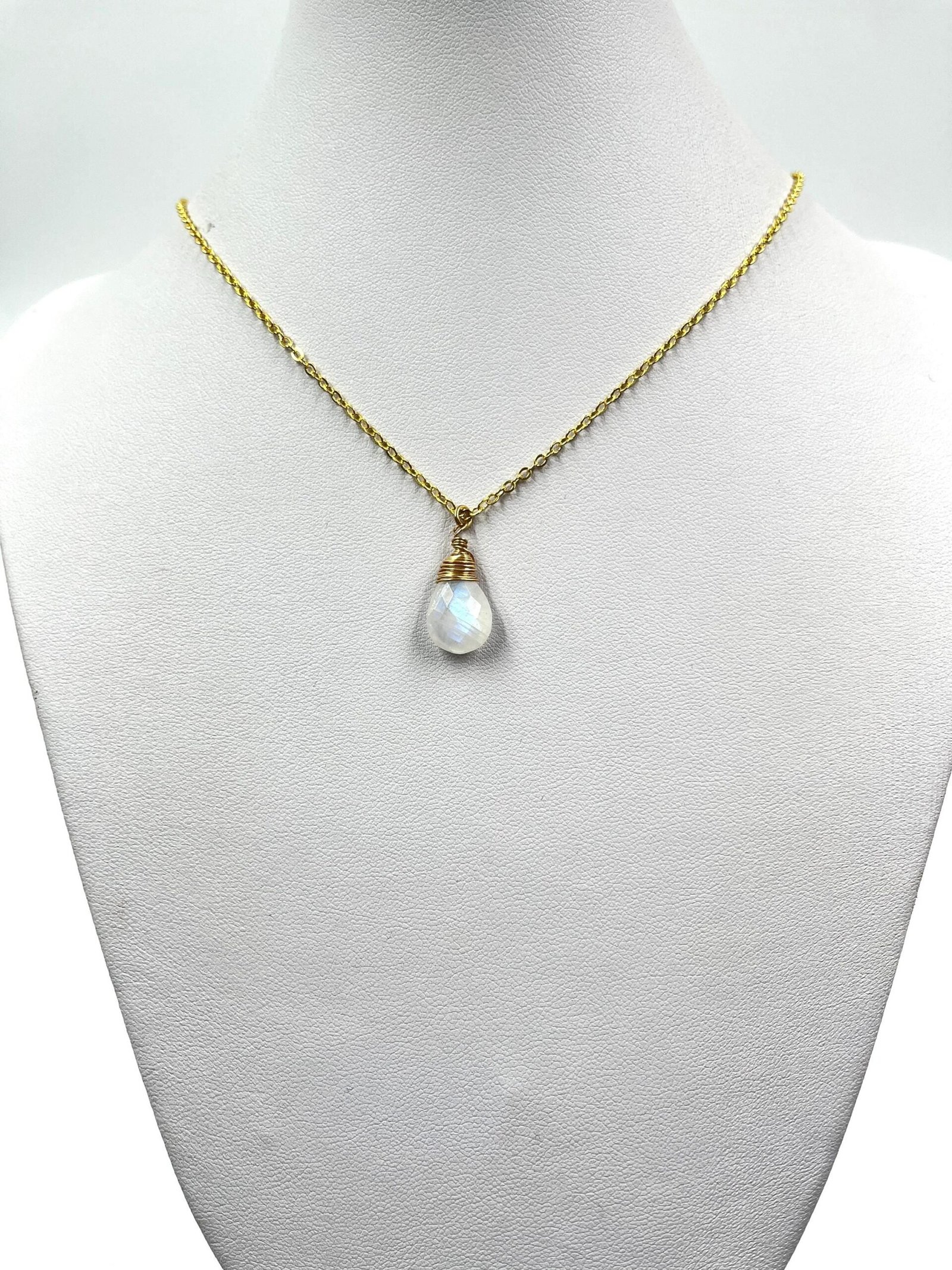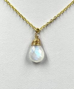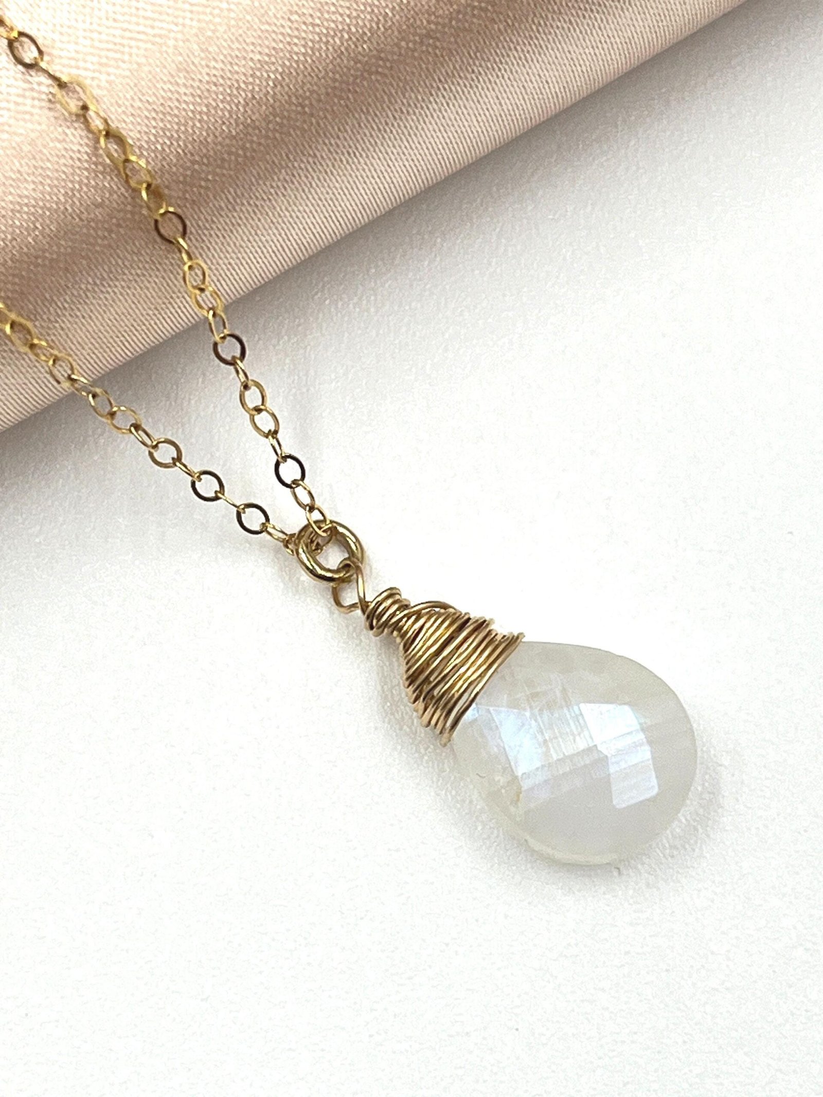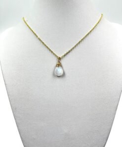 This handcrafted Moonstone necklace features a natural briolette gemstone with a beautiful blue flash. Available in 14K Gold Filled, 18K Gold Filled, or Sterling Silver, it brings a soft, luminous glow to your everyday style.